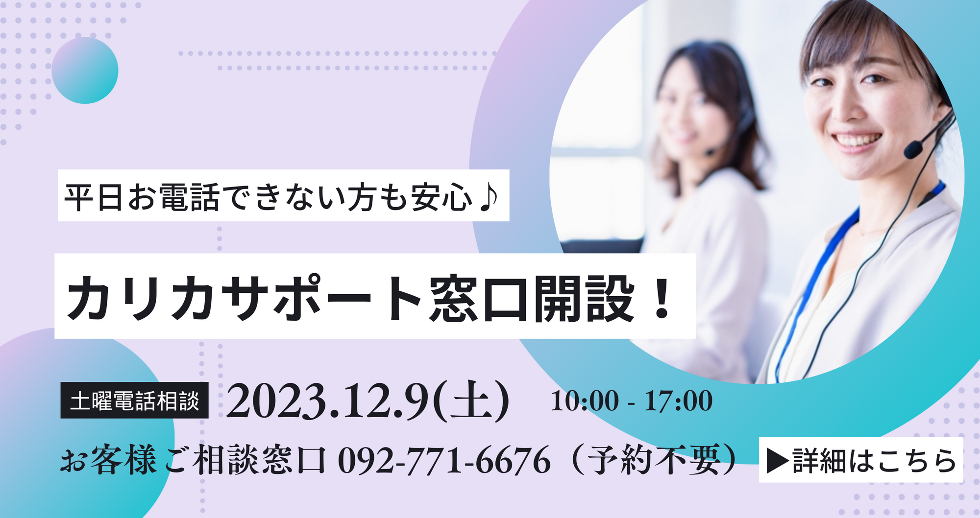 土曜電話相談 『カリカサポート窓口』を開設いたします。