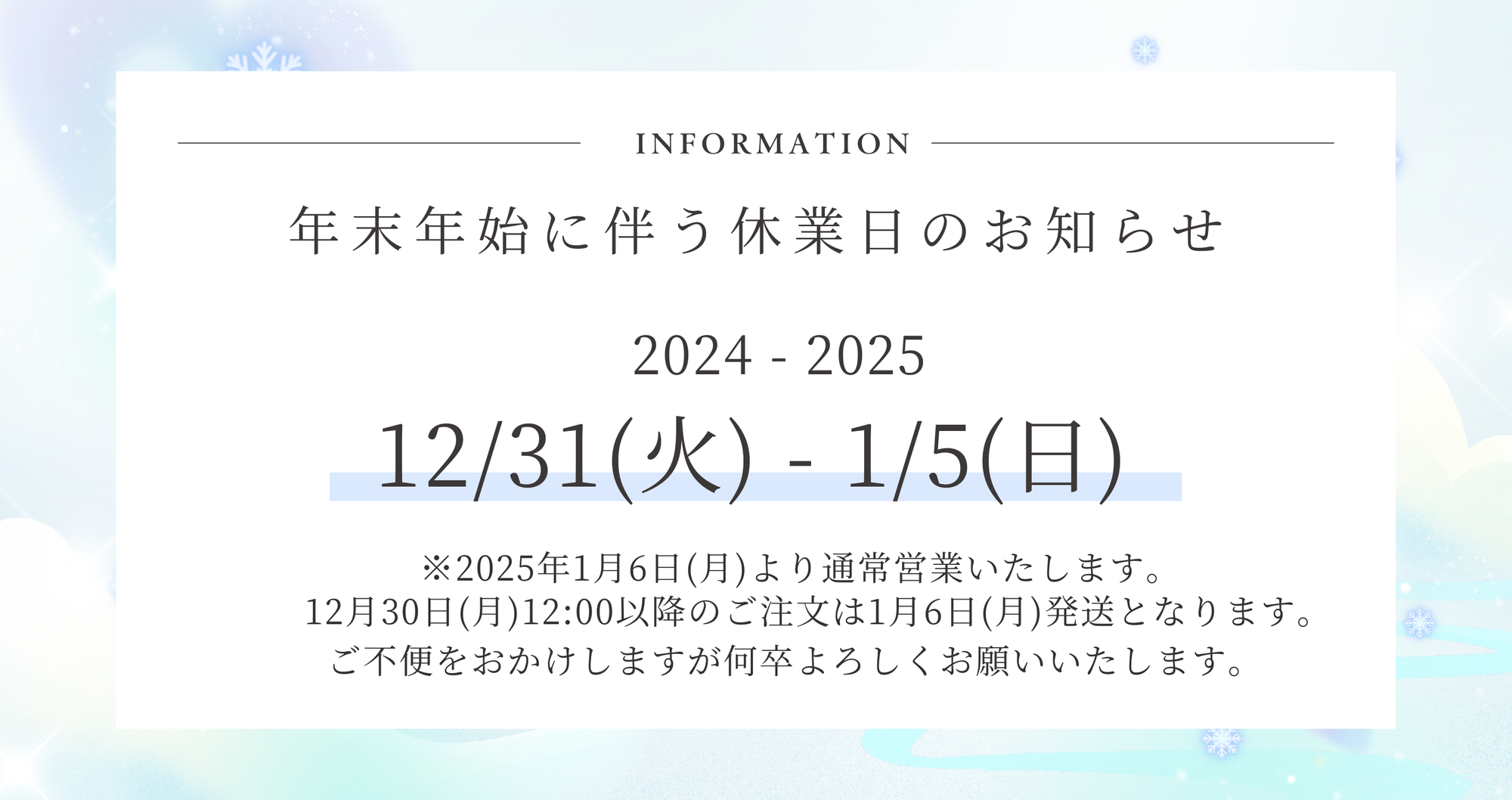 年末年始休業日:2024年12月31日(火)~2025年1月5日(日)