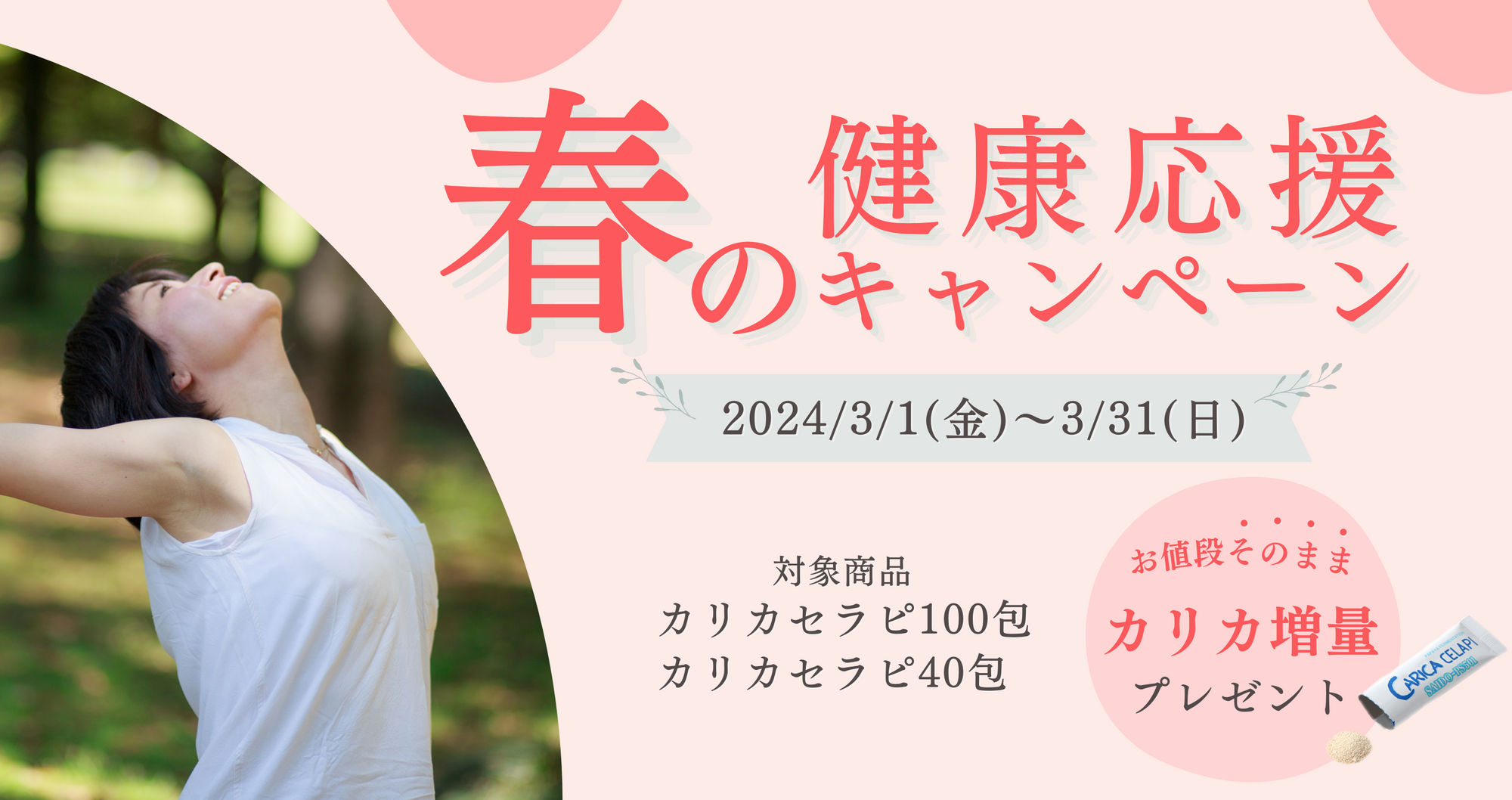 春になると体調が崩れる方が急増すると言われています。寒暖差によって心身のバランスを崩しやすい春の揺らぎ時期はしっかりと心と体のメンテナンスが必須!普段より少し多めのカリカでポジティブに楽しくお過ごしいただけますよう