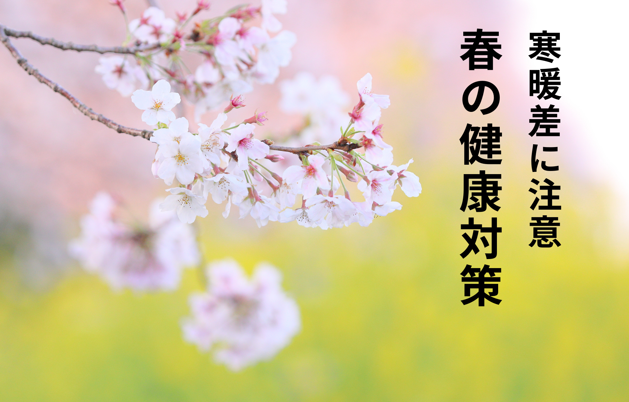 4月に入り暖かくなってまいりました。過ごしやすい時期ですが、実は春が1年の中で寒暖差が大きく、体調を崩しやすい季節でもあります。 激しい寒暖差や環境の変化などのストレスがあると、疲れ、だるさ、眠気、肩こり、めまいなどさまざまな不調が起こりやすくなります。また、気温の変化によって血圧や血糖値が乱れることもあり注意が必要です。