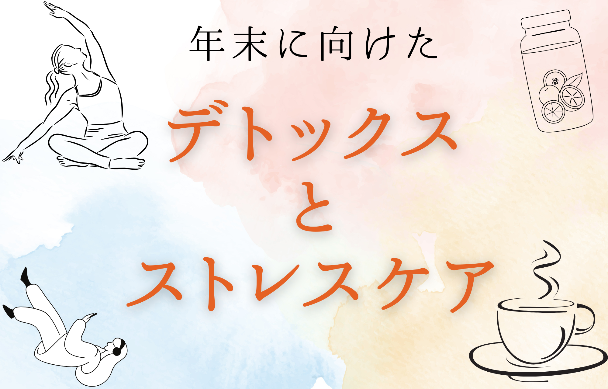 年末が近づくと、仕事や家事、年末年始の準備などで忙しさが増し心身に負担がかかりやすくなります。ストレスを溜めず、健康的に新年を迎えるためにデトックスとストレスケアを意識して日常に取り入れてみませんか。