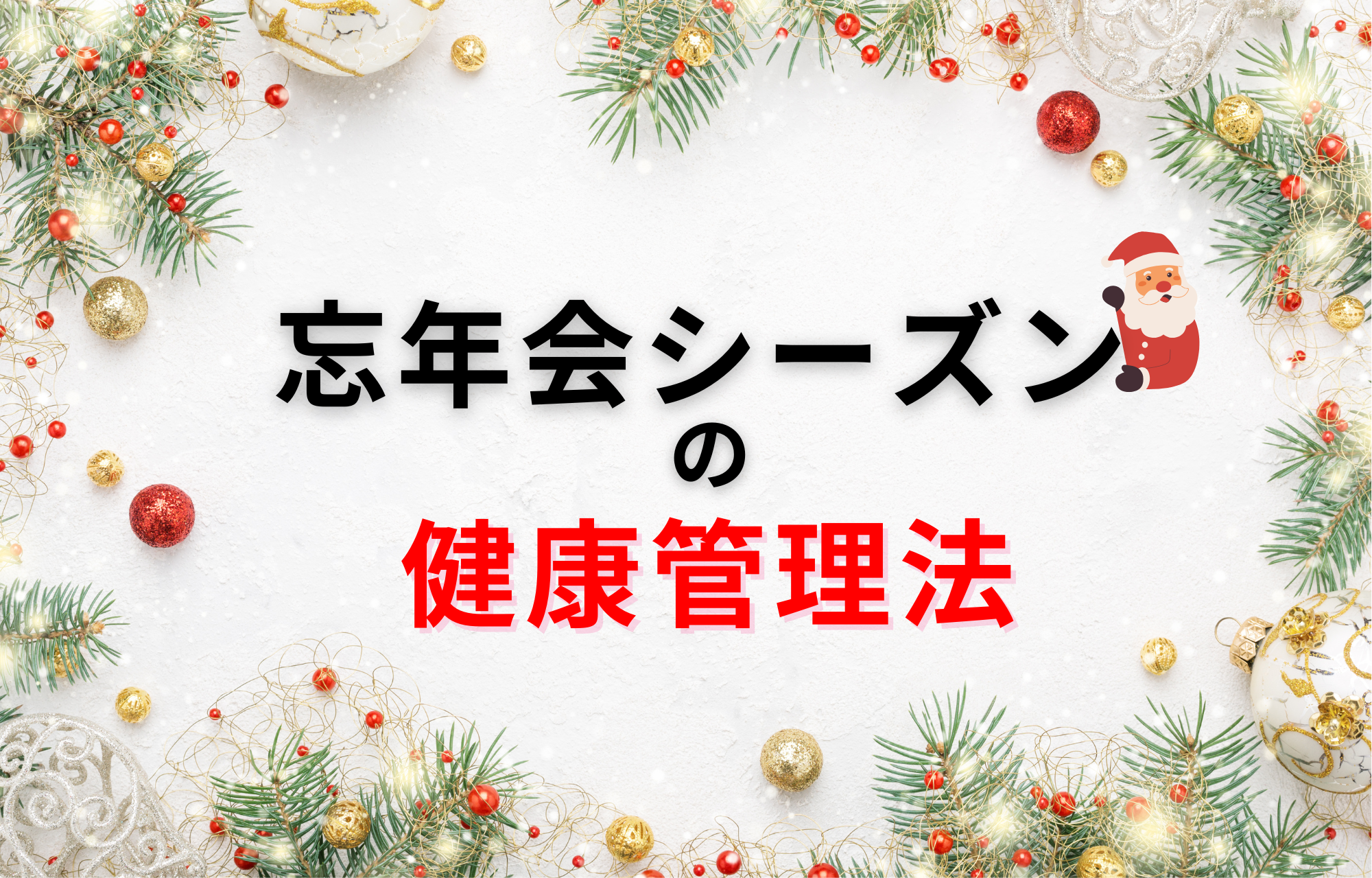年末のこの時期は、1年間のがんばった疲れがどっと出たり、忘年会やクリスマス、納会などイベントでは外食が増えることで、健康を維持するのが難しくなりがちです。ぜひこのシーズンに実践したい健康管理方法をご紹介いたします。